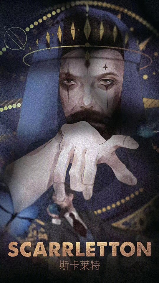 是无限的恐惧。聚光灯下,戴着嬉笑小丑面具的男子